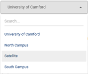 The screenshot below shows the user selecting between child places of a university. Places are powerful tools for defining and managing the organisational architecture within the solution, and delegating authority.