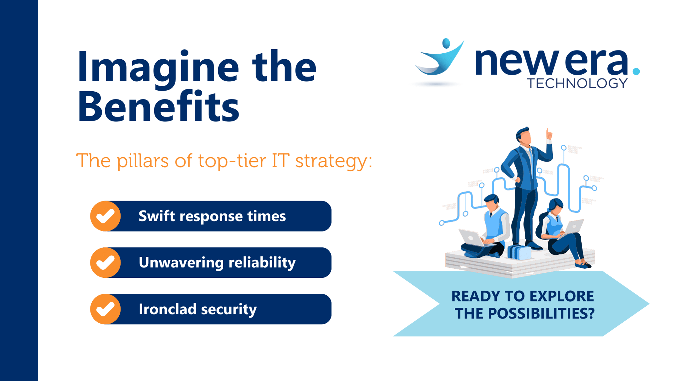 When your business expands, hiring additional internal personnel can be time-consuming and expensive. Managed IT service providers offer the expertise needed to ensure that your business’s IT infrastructure can keep pace with its growth. Whether collaborating as a co-pilot or providing relevant IT support and services, New Era can handle your IT concerns, allowing your staff to focus on their core tasks.
